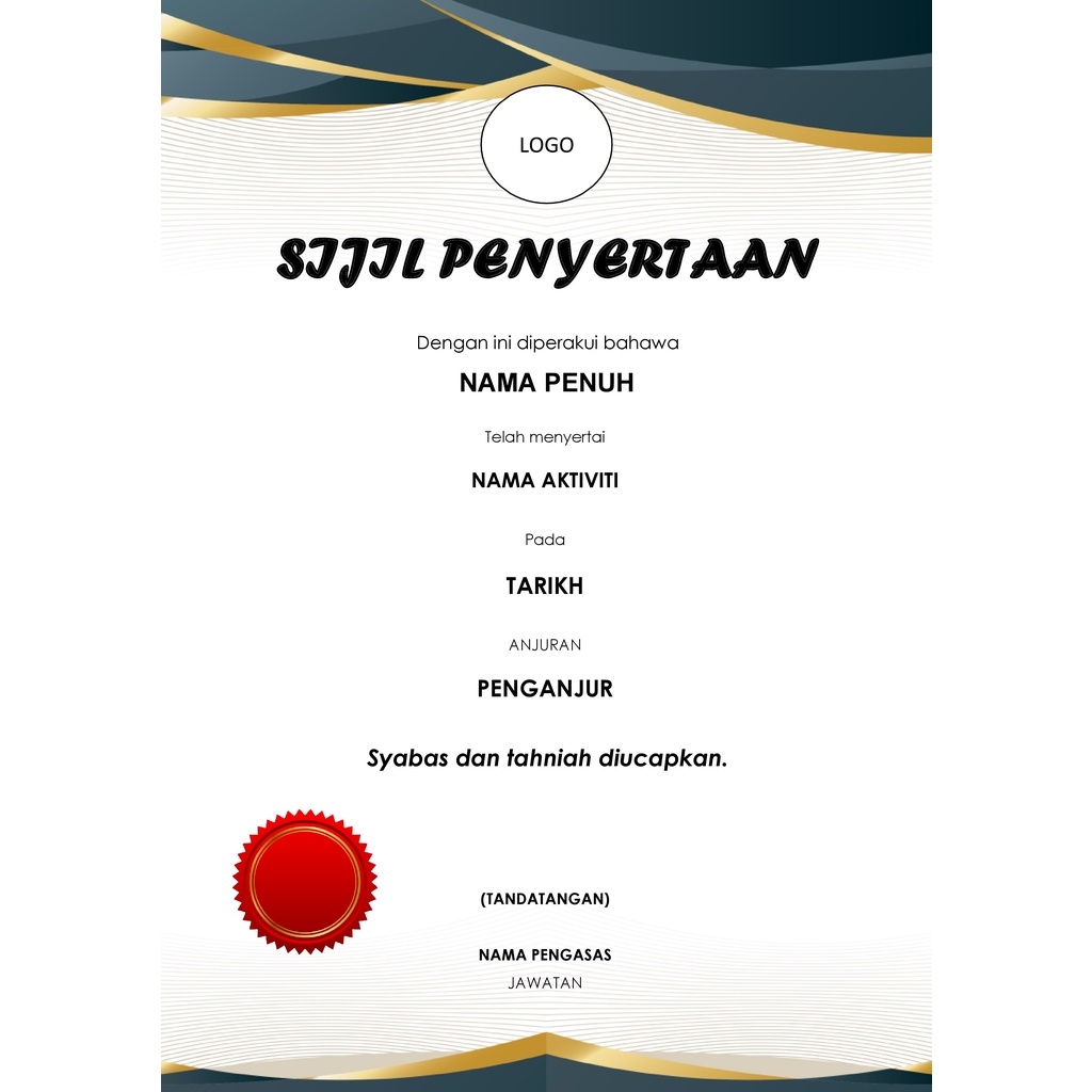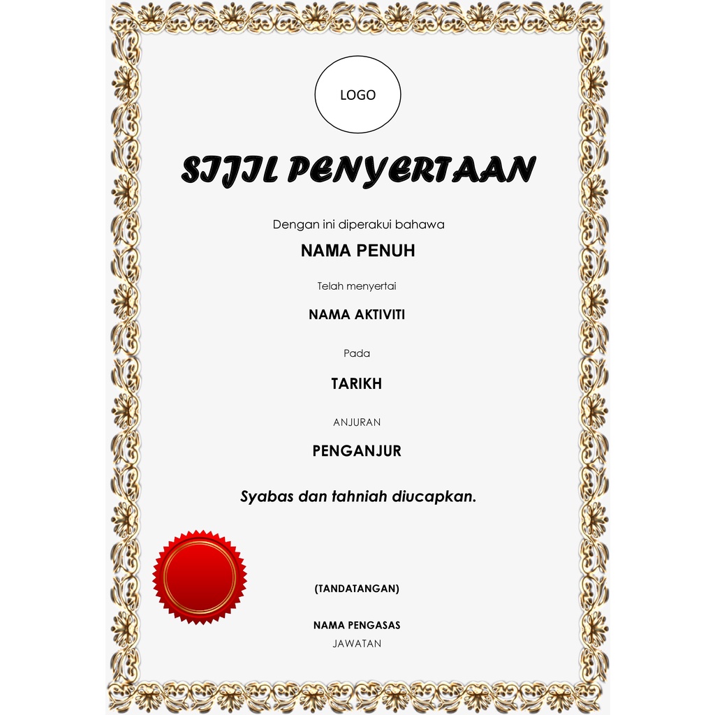 Add your content, save and they are ready to be printed. You can customize it for your design needs. Oct 05 2021 nurin syahirah membina sijil penyertaan menggunakan microsoft word. Using these printable certificate templates for . Templat sijil yang boleh diedit. Hasilkan dan edit sijil dalam talian untuk semua tujuan pendidikan dan perniagaan anda. Template sijil penyertaan boleh edit. Dimusim pdpr ini, guru boleh menggunakan sijil ini bagi menarik minat pelajar untuk menyertai kelas pdpr. Then you can customize it within minutes, adding background, logos, texts of congratulation or appreciations. Untuk makluman, template sijil ini adalah berformat pptx (microsoft power point). Lau pnjd feel free kalau nak edit atau delete d. Anda boleh edit, dan terus print kerana saiz bagi setiap . Contoh template sijil penghargaan(download muat turun edit print jer). ٢١ ذو الحجة ١٤٤٢ هـ.